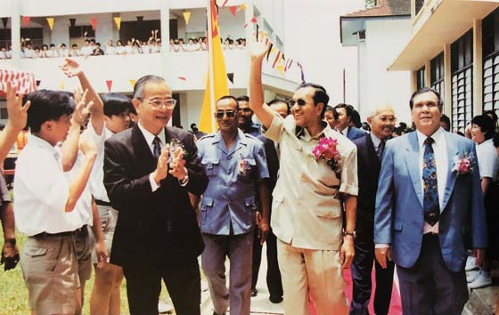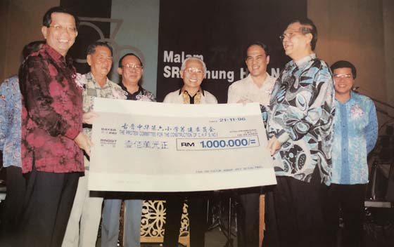时任首相拿督斯里马哈迪医生在丹斯里拿督阿玛黄文彬邀请之下,于1995年莅访古晋中华第一中学,这也是首相首次访问华文独立中学。当时,丹斯里拿督阿玛黄文彬协助人联党向首相拿督斯里马哈迪医生提出在古晋兴建中华小学第六校。在首相拿督斯里马哈迪医生亲自批准下,丹斯里拿督阿玛黄文彬发动筹建六小基金,自己亦抛砖引玉捐献一百万。在各界众志成城下六小总于顺利建成,并于1998年由时任首相拿督斯里马哈迪医生亲自开幕。