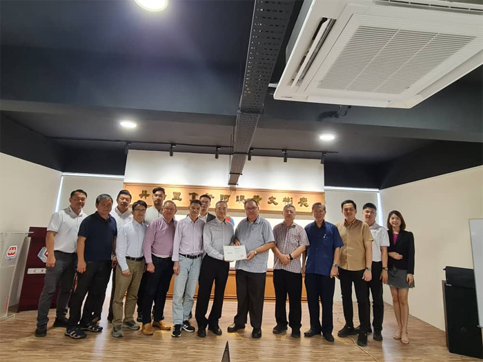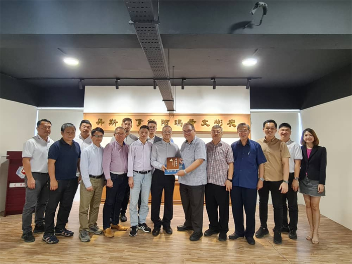 古晋中友会会长拿督黄国辉(左四)与华侨大学代表团包括了华侨大学原副校长,中国国家社科基金重大项目《海外华人宗教文献资料的收集、整理与研究》首席专家张禹东教授(左三)。左一起为中友会秘书长田荣喜、中友会署理会长许庆喜。右一起为华侨大学马来西亚研究中心主任钟大荣副教授、中友会教育主任吴泽源、中友会副会长张光福。