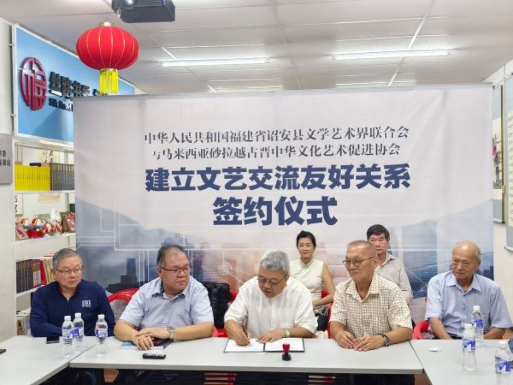 (古晋30日讯)中国福建省诏安县文学艺术界联合会与砂拉越古晋中华文化艺术促进协会,今日下午在古晋中华文化艺术促进会会所正式签署协议,建立文艺交流友好关系。此举标志着两地在文化艺术领域的合作迈向新阶段,也为马中民间关系注入新动力。