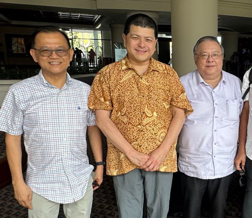 「2025年马中谊跑」主办方沙巴马中联谊协会会长胡逸山(中)此前与婆联木业有限公司董事经理拿督黄国忠和(右)营运长杨福贤(左)会面,获得该公司加码赞助5,500枚奖牌予跑步参与者,黄国忠也是沙巴马中联谊协会名誉会长,砂中友好协会会长,中国海外联谊会常委,向来热爱推动两国友好联谊。