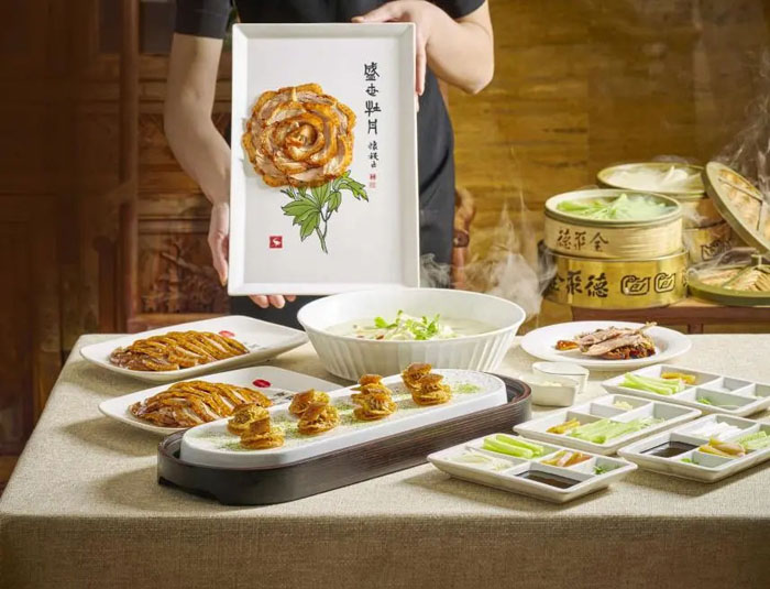 2006年,全聚德烤鸭技艺被认定为“国家级非物质文化遗产”。百余年来,经过历代名厨传承创新,博采中华烹饪技艺之精粹,形成了以全聚德烤鸭为主,融川、鲁、淮、粤菜肴于一体的全聚德菜系,成为名副其实的“舌尖上的文化遗产”。