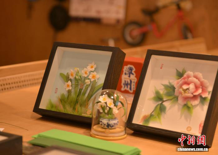 在福建漳州市北桥新村的棉花画工作室里,郭美瑜制作的大大小小棉花画以花鸟为主,或装裱于玻璃框中,或挂在墙上,或制成小摆件,肉眼细看,纹路清晰、造型逼真,给人以假乱真的错觉。