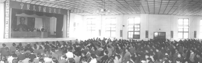 时间回到1958年,为了打破宁夏高等教育的空白,在国家的号召下,来自全国各地的教育人才几经辗转来到银川建设宁大。1958年9月15日,宁夏师范学院、宁夏农学院和宁夏医学院“三院成立”,此为宁大的前身。