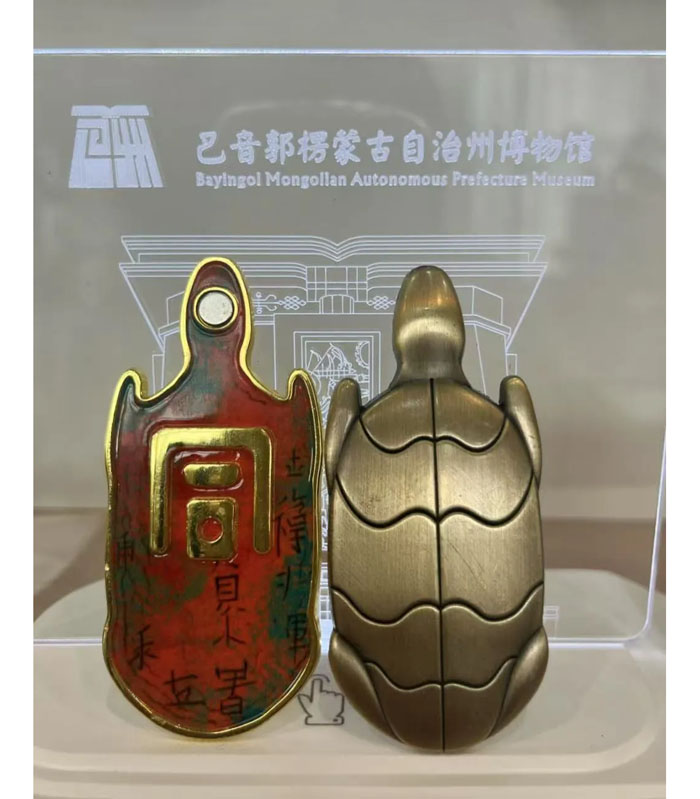 如今,巴州文博院以这枚龟符为灵感,推出了“铜龟符”双层冰箱贴!当年轻人走进博物馆,把这枚冰箱贴带回家,就像把一段历史“贴”进了日常生活,展开一场跨越千年的文化聊天。