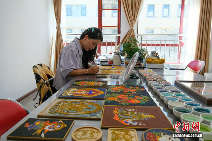 尼玛仲格介绍,她本科就读于青海民族大学,研究生考入西藏大学艺术学院。“在西藏大学主要学藏族美术史及理论,在唐卡画院主要是实践画唐卡,而且我们有要求,读研期间要画好八幅唐卡才能毕业。”她说,她已经于今年夏天顺利毕业,现在留在西藏唐卡画院当掐丝珐琅唐卡制作老师。
