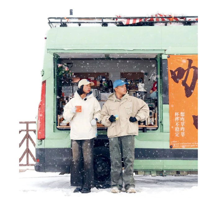 今年进入旅居的第四年,玖柒和玖陆走走停停,环游整个中国。遇到有缘分的城市,他们一住就是三四个月,也参加过不少各地的咖啡节、美食节和集市。摆摊卖咖啡和社交媒体接合作的收入已经可以覆盖旅行和生活成本,他们在账号的推送中写道:“不买房,不打工,我们靠一辆咖啡车赚到了爱情和自由。”