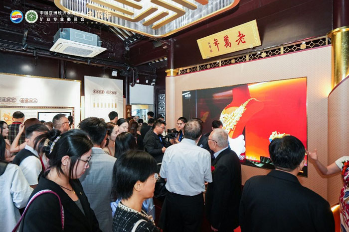 中国亚洲经济发展协会会长权顺基,中国节能环保集团原董事长宋鑫,老萬年黄金珠宝有限公司董事长罗丹,《时尚芭莎》主编沙小荔,老萬年黄金珠宝有限公司总裁蔡自斌等共同剪断红绸,宣告老萬年黄金博物馆正式启幕。