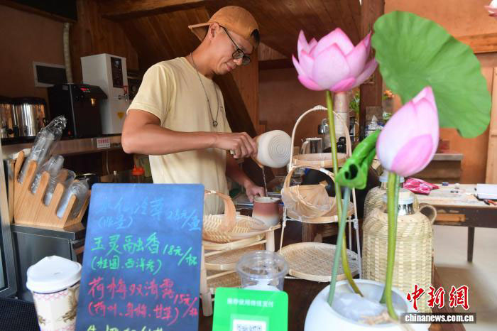 在去年国庆中秋假期刚刚试营业的“龙鱼茶舍”,记者见到来自广东的“80后”青年莫健恩。过去他一直在佛山从事家居行业,因经常在短视频平台刷到五夫青年返乡种植荷花的视频,那种自由自在的生活状态令他心生向往。2024年底,他决定到五夫镇走一走。