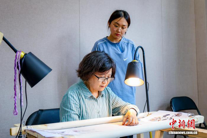 “汴绣发展是在老一辈汴绣师傅的努力下逐渐恢复其光彩,针法应用也更加炉火纯青。”苗炜举例称,比如反戗针绣瓦,可以通过层层叠压展现瓦片的质感,打籽绣能精准表现柏树叶的颗粒感,平针绣则可以通过变换出入针方向,模拟出不同丝绸的质感差异。