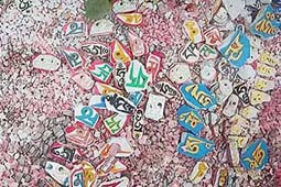 成千上万、密密麻麻的桃红石块,堆叠成一座又一座的红色小丘,几乎达三层楼高,石块上夹杂有灰白色线条,有些也掺杂其它颜色的文字,色彩鲜艳、气势逼人。这里是中国青海的嘉那嘛呢堆,据说嘛呢石多达20亿块,它们出现在这里,不是出于天然,而是300年来,途经的藏人所留置,远看如白线部分,其实是刻在石上的经文,代表著满满的祝福。