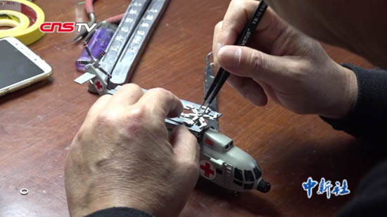 在李志勇看来,做模型需要耐心,他最享受的就是制作过程。航母上长度8毫米的天线底座,他足足用了三天才完成。
