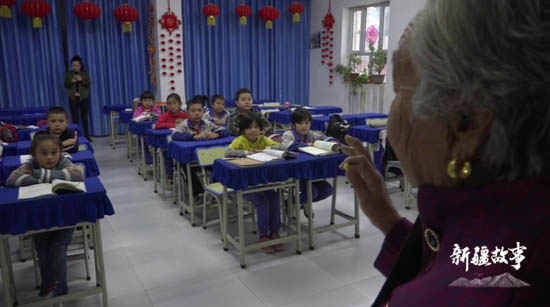 潘玉莲37年的老邻居阿依谢姆古丽·苏来曼告诉记者,不管刮风下雨“爱心小课堂”从来没有间断过,潘玉莲有一次摔坏了腿,拄着拐杖坚持给孩子们上课,让她很感动。自己家两个孩子都在潘玉莲的“爱心小课堂”上过课。