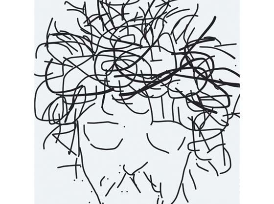 “总觉得自己以前比较犀利,现在画画没那么纯粹,不知自己想怎样。”不擅辞令的他,尝试描绘内心的忐忑。越费劲,他那一头浓密而斑驳的灰曲发越见奔放,羡煞无数地中海、bar code头中坑,当事人戏谑是中年危机下的仅余安慰。