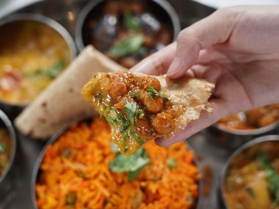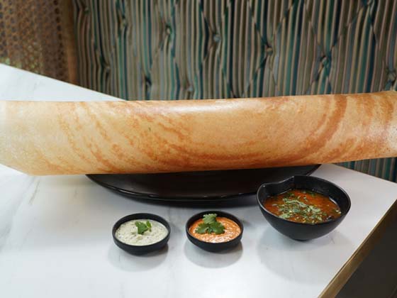 香港大部份印度餐厅,卖的都是北印度菜,但这里就卖少有的南印度素食,“北边人会用多些麦,主食有麦制的饼Naan及Roti,咖喱亦比较浓稠;我们南边则多用米、豆及小米,咖喱比较稀,加入好多味道及香料。”餐厅招牌菜是南印度主食Dosa,粉浆由米及黄豆制作而成,发酵一晚,在铁板摊成一块巨型薄圆饼后卷起,特别吸睛,吃起来带淡淡牛油香。