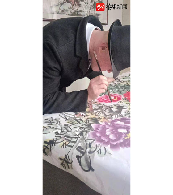 眼睛看不清,就借助放大镜,一点点画。王行卫告诉记者,颜料属于化学品,画太久也担心对眼睛有影响,因此画画的频率是每天画两三个小时,晚上热传的那幅画《马到成功》画了三天,后来送给了淮安市淮阴区残联。《花开富贵》等基本上两天能画完。