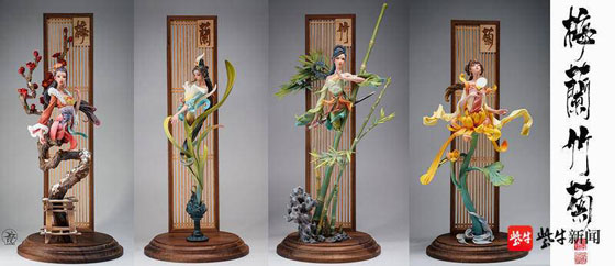 而在他的最新作品《枯荣寺》中,这个理念也一以贯之。以深山中一座残破庙宇作为主要场景,此间草木一半干枯、一半繁荣,钟楼一半残缺、一半完整,禅师在破庙内静坐参禅。草木岁岁枯荣、岁月年年流逝,借场景与人物的相互承载,平添一份浪漫的神话色彩。精美繁复的场景、静谧流淌的禅意、喷薄而出的故事感,在这个只有三四十公分大小的作品中完美呈现。