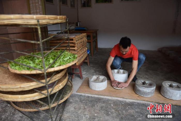 茶树鲜叶采摘后,经杀青、揉捻、晒干制成晒青毛茶。若经汽蒸后压制成紧压茶,即为生茶;若经自然后发酵工艺,或人工渥堆后发酵加工制成散茶和紧压茶,则为熟茶。