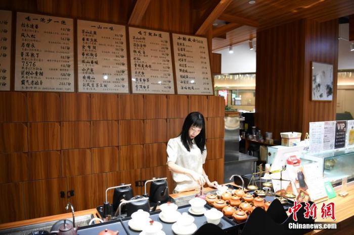 在普洱市一间茶室中,来自泸沽湖畔的摩梭人茶艺师阿生花身着旗袍、高挽发髻,温杯、投茶、出汤等一套茶艺行云流水。“生茶在存放数年后口感也会变化,苦涩味减淡,香气更纯正。”阿生花边介绍,边为客人分茶。