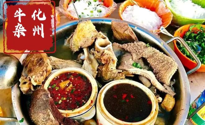 在化州,牛杂已经成为了当地抢尽风头的特色小吃,只有去过化州的人,才能领教到这种阵势。当地的牛杂店,大都在小街小巷里,店里三五张桌椅,窄窄的一个铺面。即使稍大一点的牛杂店,也只是铺面宽敞些,桌椅多几张,其他的内容并无二样。但一家家的小牛杂档子,却可以夸张到“除却牛杂不成墟”的地步,甚至代表了化州的一种饮食文化。