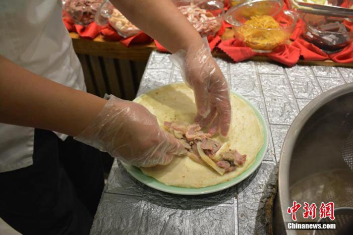 “做好朝天锅也需要有‘匠人’精神。”陈安辉说,师傅告诉他,朝天锅因用料为猪肠、猪肚等腥味较大的食材,更需要细致的处理,看似简单的肉卷饼,其中的门道数不胜数。