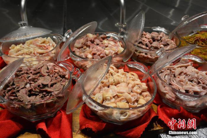 “当代的朝天锅进行了一定程度上的改良。”陈安辉说,朝天锅用鸡肉、驴肉煨汤、以煮“猪下货”为主,猪肠、口条、猪头肉要先用开水涮过,再放到老汤锅里煮,火候要掌握得恰到好处,其中猪肠不能断。“猪下货”煮熟后捞出切好备用,这样朝天锅的配料就准备好了。