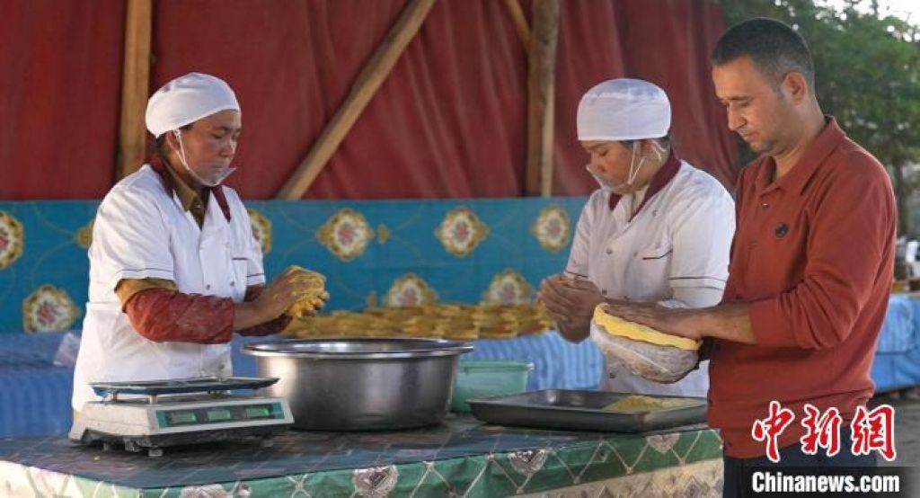 伴随着清晨第一缕阳光,新疆和田地区墨玉县扎瓦镇博格达依艾日克村村民吐迪麦麦提·肉孜麦麦提家的3个馕坑早已热气翻涌,空气中弥漫着馕的香气。吐迪麦麦提·肉孜麦麦提和工人们正在打馕作坊里和面、称重、压饼、烤制,一道道工序井然有序地进行着。
