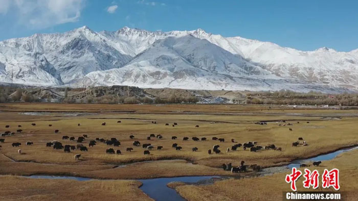 沙棘、杉树、柏树、红柳、胡杨等植被分布广泛,药用植物有甘草、党参、麻黄、雪莲、肉苁蓉、大芸等。野生动物品种多样,有黄羊、盘羊、雪豹等国家级重点保护动物。