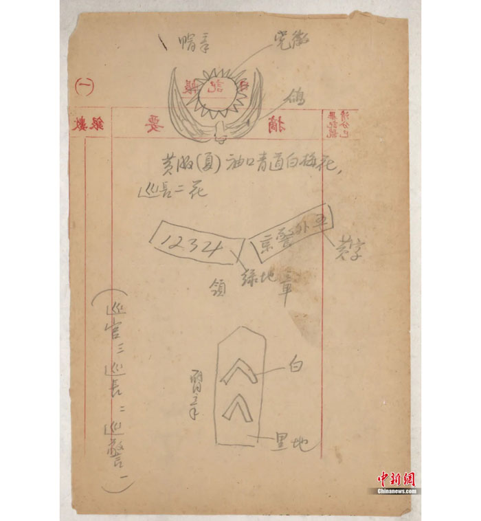 刘琳:北京人艺戏剧博物馆的展品记录着老舍与剧院的诸多合作细节,其中一件展品是老舍的手绘草图。当时老舍正在创作《龙须沟》,与剧组人员谈及剧中刘巡长的制服,老舍为此专门画了一幅各级巡警徽章样式的草图,并请夫人送到剧组。