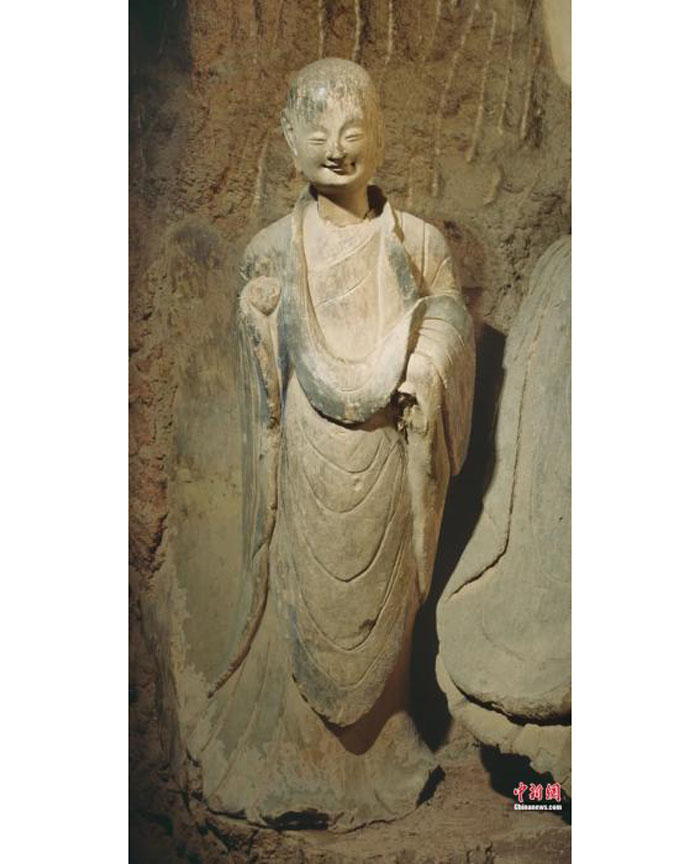 麦积山石窟造像的微笑更让人亲近,云冈石窟造像的微笑则神圣感更强。微笑表情在各个早期石窟中均有侧重和不同,需要我们仔细感受和体味。当然,这也说明在石窟“大家庭”中,每个石窟都是不可缺少的成员和构成,都能各美其美,美美与共,魅力无限。