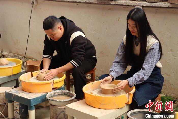 2022年毕业后,“00后”姑娘金宏杨从父亲金朝军手中“接棒”,开起了个人青瓷创意工作室,探索青瓷烧制技艺与新技术的融合发展。