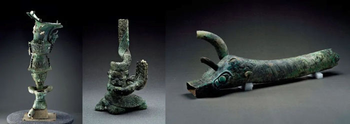 一声令下,怀着或是不舍,或是决然,或是恐惧的心情,他们将所有硕大的铜器用力砸坏。那些由人像、动物、尊罍组成的瑰丽繁复的铜祭坛,瞬间分崩离析。他们点燃火堆,将祭器扔进火里,霎时火光冲天。