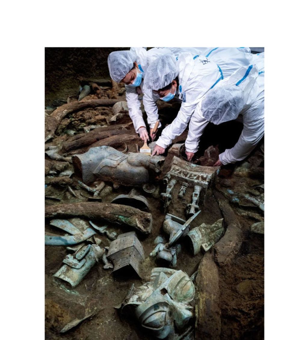 2020年至2022年,三星堆遗址祭祀区考古发掘在四川广汉启动,这是1986年之后对祭祀区的第二次发掘。再次发掘三星堆,比30多年前复杂许多。科技考古延长了人们的视力,考古人仿佛长了一双三星堆人梦寐以求的“纵目”。坑里的一切都是解谜线索,包括土壤,土壤被打包收藏起来,通过新的科技手段会从中不断看到新的东西。