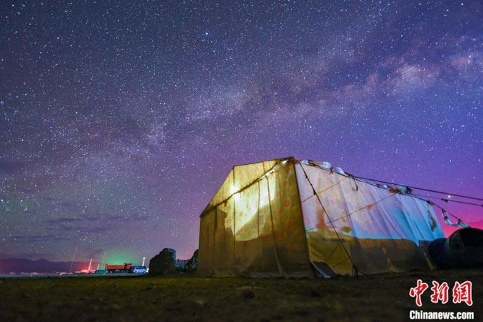 西藏海拔高、空气稀薄,大部分地区光污染小,只要天气晴朗、月相合适,银河很容易看到。