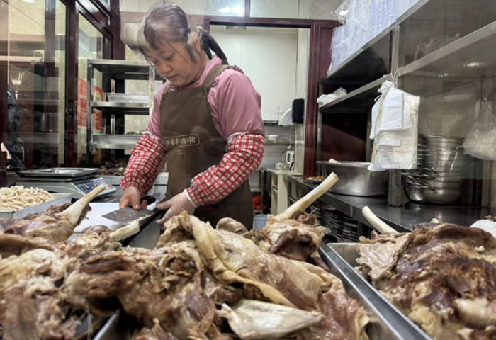 藏书羊肉风靡长三角,源于它独特的制作技艺。“从事羊肉店工作非常辛苦,早上4点多钟师傅们就要开始将现杀的新鲜羊肉分割浸泡,6点熬汤、7点拌馅、8点红烧、9点备菜、11点迎客……从10月进入销售旺季以来,这成了很多藏书羊肉从业者的工作‘时刻表’。”和顺羊肉馆的老板娘府朝红说。出身太湖边刺绣世家的她自2000年从公公手中接过店铺后,就将心思全都放在了羊身上,一直琢磨着如何把控品质、创新菜肴。在府朝红看来,先辈们历经坎坷、勤劳耕作,将藏书羊肉的制作技艺一代代传承下来,造福一方,这是一份文化的传承,更是一份责任的担当。