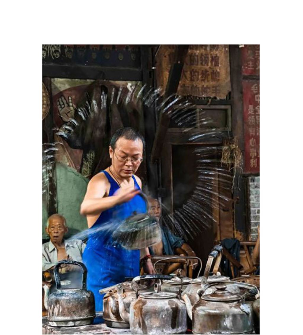陈锦从上世纪90年代就开始观察“茶馆”,在摄影专辑《四川茶铺》中,他将镜头对准聊天、看报、读书、享受按摩以及掏耳朵的四川人。“拍茶馆三十几年,茶馆是成都人的公共空间和灵魂栖息所。通过茶馆,可以了解成都的文化,看见成都人的生活状态。”随着时代的发展,茶馆也在发生变化。喝“盖碗儿”的不乏衣着时尚的年轻人,他们认为“这里有时代的味道,跟其他地方不一样”。