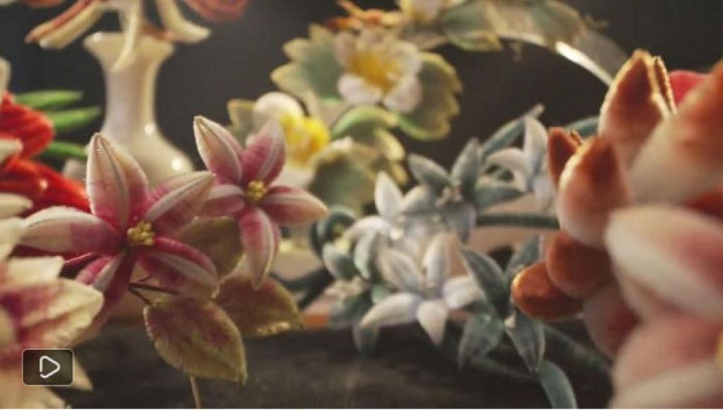 金黄的银杏、洁白的茉莉、粉嫩的桃花……在南京甘熙故居内的一处深幽厅房,彰显着四季之美的绒花同时在一面古朴的深色墙面上盛放,引来游人的注目。这似乎也是绒花自身发展的生动隐喻,历经千年的喧嚣,它们依旧花开不败,绽放出夺目的光彩。