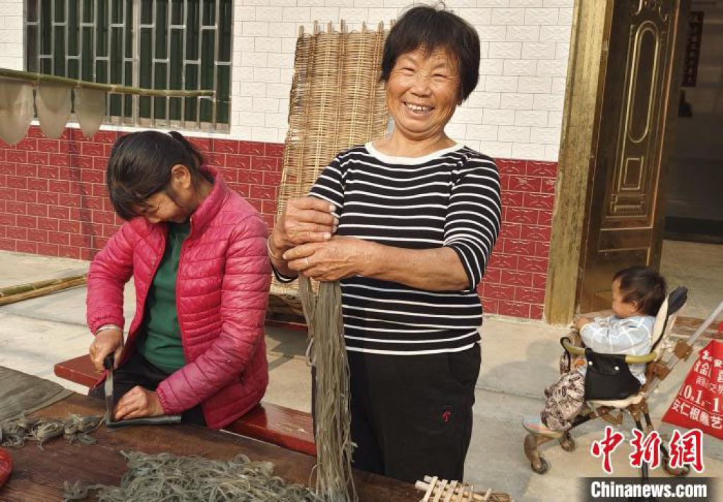 红薯粉在当地已有600多年的制作历史,是华王乡的特色产业。“我做手工红薯粉已经20多年了,这是我们村里家家户户都会的手艺。各家各户都种红薯,红薯粉成了村里一大特色。”合江村一名贺姓村民介绍,红薯经过十几道制作工序后变成韧性十足、晶莹剔透的红薯粉,每到腊月,本地红薯粉条就成为畅销品,成为年货清单上的必备品。