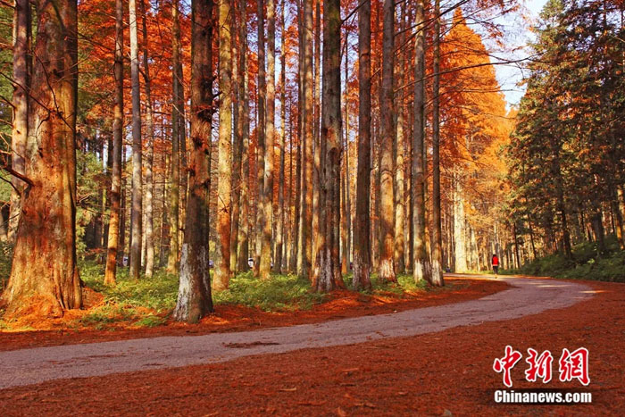 被称为“活化石植物”的水杉,从每年11月便开始“变装”,在靖州排牙山、溆浦思蒙碧水丹霞景区等地,成片的水杉林已渐次变色,迎来最佳观赏期。当阳光从水杉中穿透过去,光影婆娑,如梦似幻,仿佛走进冬日专属氛围感的油画世界。