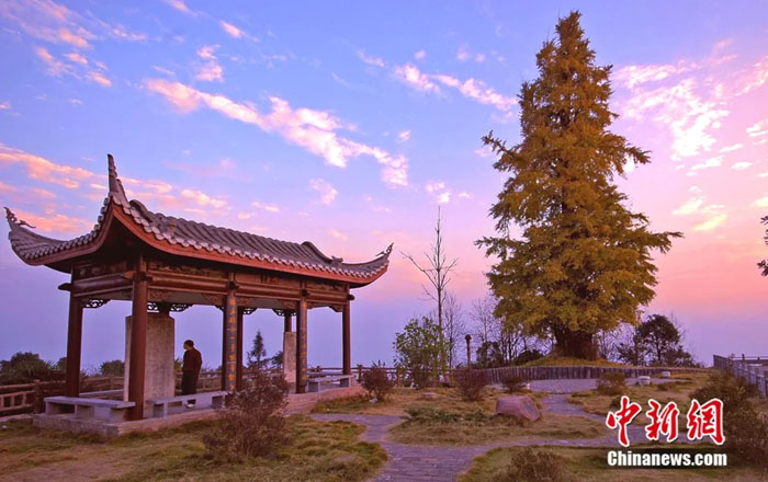 除了观赏水杉林,还能“邂逅”千年银杏王。在靖州飞山上山道路两旁,以及飞山禅寺和方广寺周边,栽种着1600余株银杏树,其中一棵为“飞山银杏王”,已有千年历史。